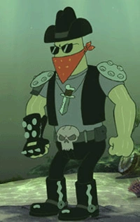 Denis je bio jedan od glavnih neprijatelja u prvom filmu. Plankton ga je platio da ubije Sunđer Boba i Patrika, jer su krenuli u Školjka Siti da vrata krunu. Denis je neka vrsta ogromne zelene ribe. Denis je pokušao da ubije Sunđer Boba i Patrika svojom "velikom" čizmom [da ih zgazi], ali je njega zgazio Kiklop sa "većom" čizmom. Kasnije se Denis vraća dok se Sunđer Bob i Patrik sa krunom voze u Koralovo na leđima Davida Hasselhoffa, i bori se Sunđer Bobom. Sunđer Bob napuše balončiće od sapunice, pa oni odu Denisu u oči koje počinju suziti od sapunice. Tada Denis udari u brod i umire, a David, Sunđer Bob i Patrik se saginju i preživljavaju. Denisu je glas posuđivao Alec Baldwin.
